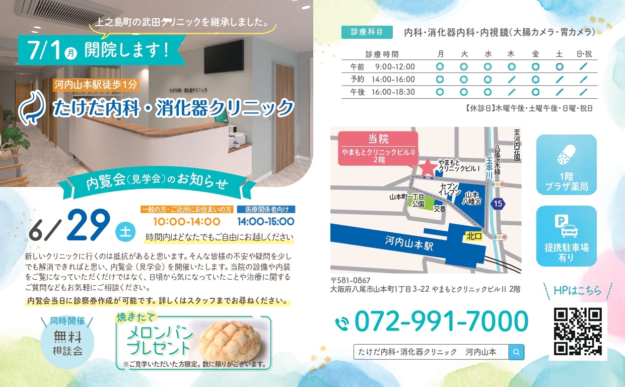 これから、八尾市山本の地域の皆様に少しでも貢献できるよう、頑張って参ります。診察にお越しいただいた際は、おひとりおひとりの症状に合わせて丁寧に診察いたしますので、ぜひお気軽にお立ち寄りください。